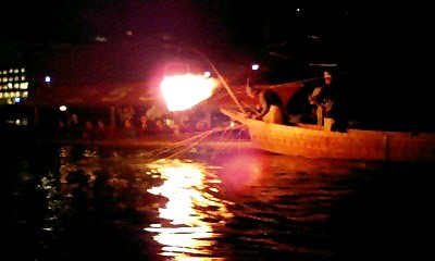 今夜の接待では、初めて鵜飼を見ました。
